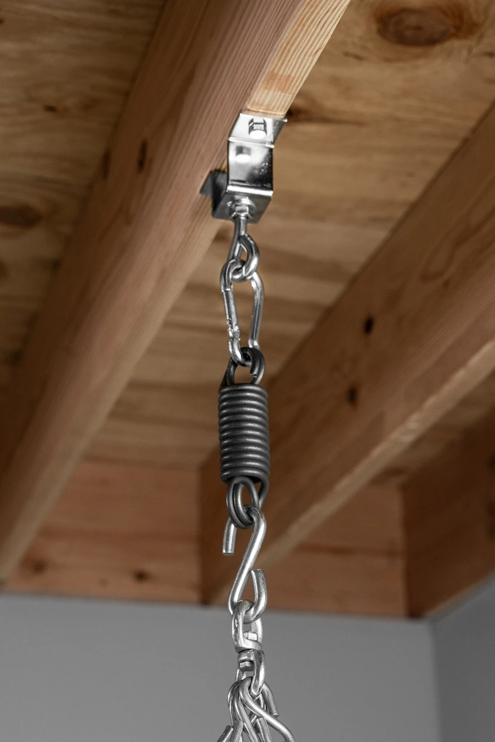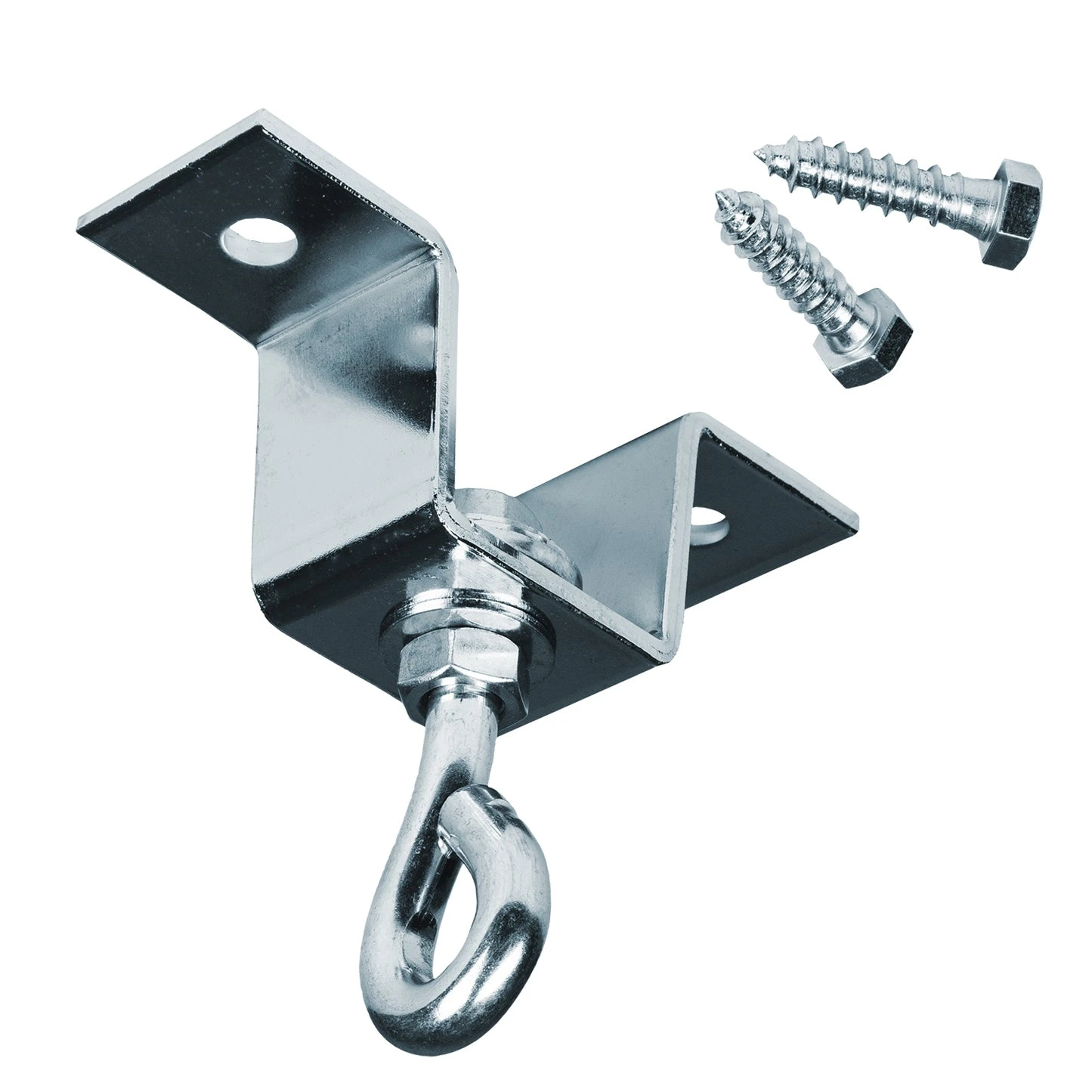 Industrial 3/16” steel wood beam ceiling mount hanger is ideal for all heavy bag mounting demands. Easily secures into ceiling joists to hang heavy bags for intense training. Includes a sealed ball-bearing swivel which allows the eye bolt to swivel or rotate, alleviating tangled chains and hanging straps. Ideal for all home heavy bag training. Two mounting lag bolts included. Holds heavy bags up to 150 lbs.